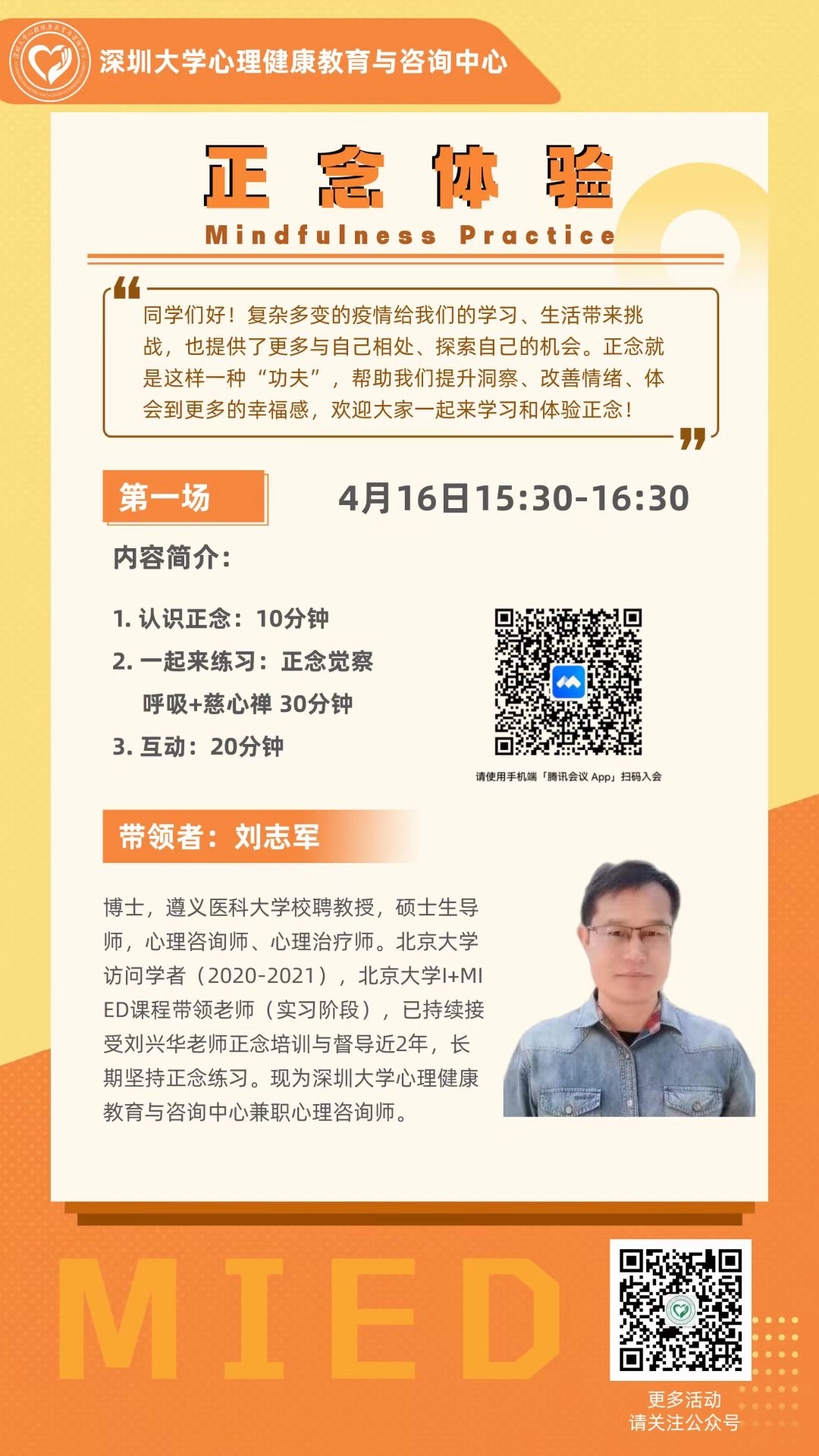 (上述心理援助活动受到中国心理学会正念心理学筹委会、北京大学心理与认知科学学院刘兴华副院长团队、深圳大学心理健康教育与咨询中心的大力支持!特此鸣谢。