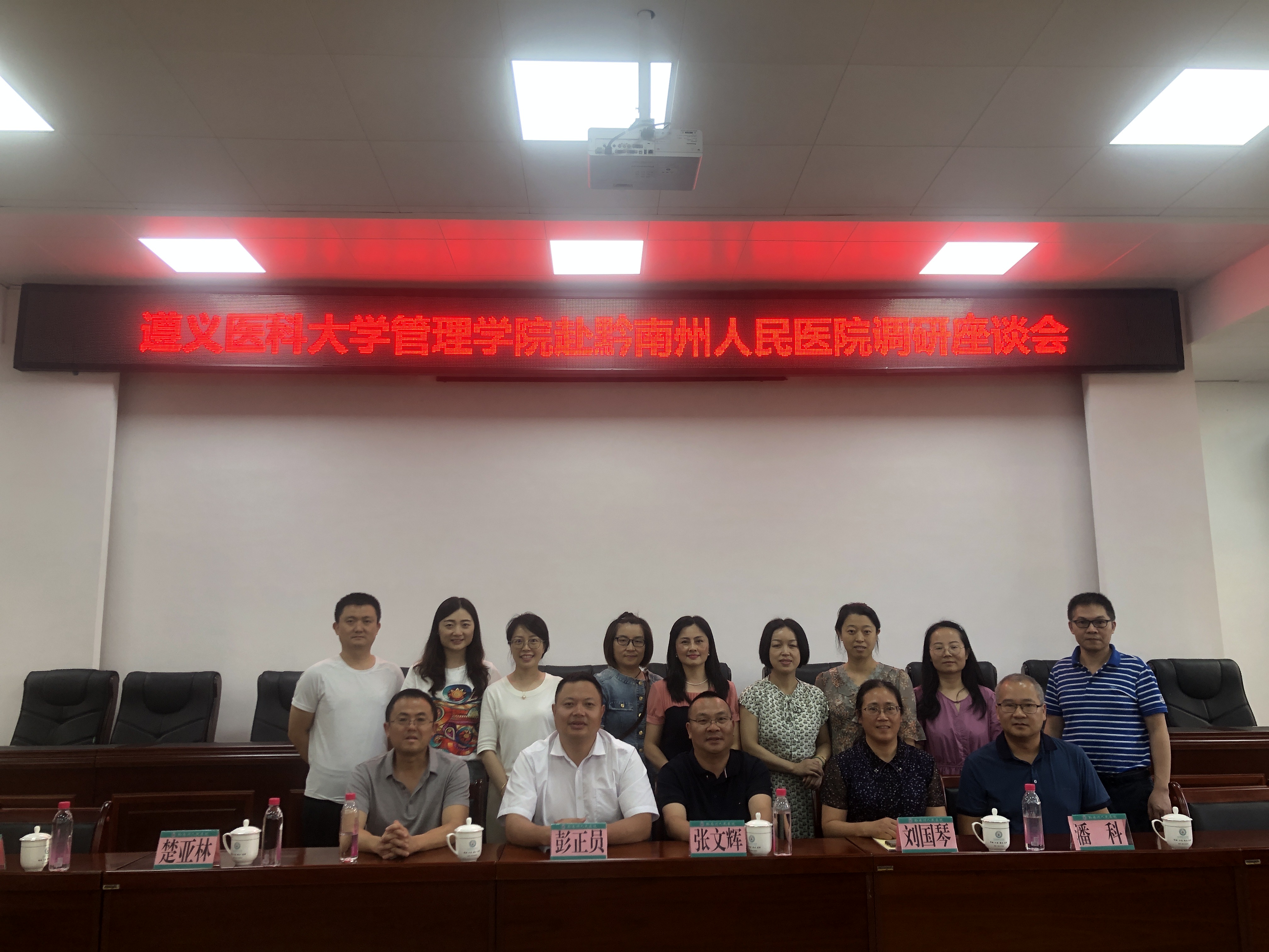 7月12日,学院党委书记张文辉带队一行8人到黔南州人民医院和黔东南州人民医院进行“访企拓岗”走访调研。黔南州人民医院院长吴志平,副院长潘科,我院校友办公室主任杨杰、人事科科长黄晓燕参加调研。