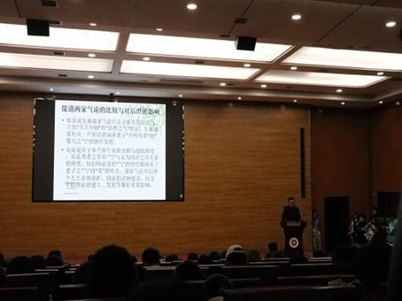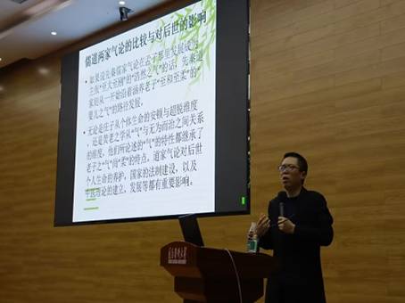 魏来教授首先向积极参加本次讲座的老师及同学表示感谢,并向大家介绍了本次讲座的主讲嘉宾李刚博士的研究领域,希望同学能认真地与李刚博士一起遨游人文海洋,探索“气”的思想。接着,主讲人李刚博士从“气”字型的演变、气与生命、甲骨文中的“气”、《老子》中的柔和之“气”、《庄子》的通天下一气、孔子的“气志”论、孟子的“气志”论、儒道两家气论的比较与对后世的影响等方面向大家介绍了“气”的思想及其发展。此外,李刚博士还为大家详细解读了“气”在老子宇宙论中的地位、《老子》之“气”的特性、《老子》之“气”的涵养方法、《老子》之“气”的作用、《老子》气学思想的影响等内容,带领大家深入理解了老子思想的精神内涵。在讲座尾声,魏来副院长对本次讲座进行了总结,他强调“气”的思想及其发展是从“节气”到“气节”的过程,希望同学们都做有浩然正气的人。