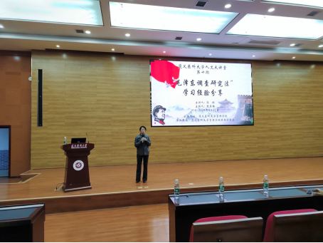 楚亚林副教授首先向出席本次讲座的老师及同学表示感谢,并向大家介绍了本次讲座的主讲嘉宾郭坦博士的研究领域及意义,希望同学们能从本次讲座中有所收获。接着,主讲人郭坦博士从调查起源、毛泽东调查研究的方法、调查研究成果运用这三个部分详细论述了调查研究。郭坦博士从自身的经历出发,向同学们展示了自己调研时曾发出的问卷“全科医学生问卷调查”,引发同学对调查研究的思考,紧接着郭坦博士详细讲述了毛泽东的调查研究方法,并向大家展示了相关书籍。最后,郭坦教授对本次讲座进行了简要总结,希望每个同学都可以通过对调查研究的了解促进自己的学习与科研。