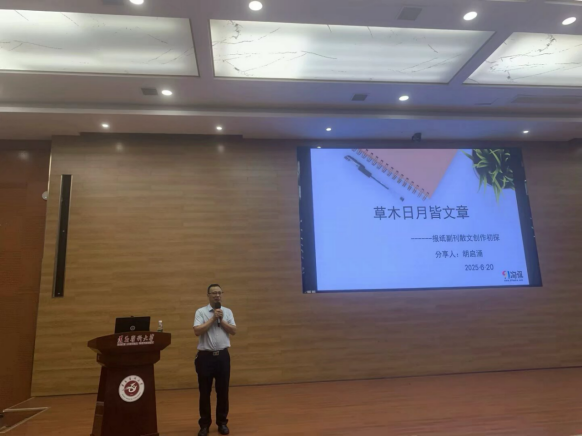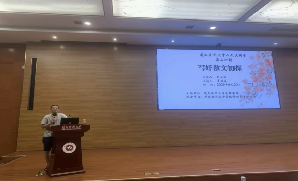为深化我校学生对散文创作的认知,提升文学审美与写作能力,推动校园文化建设与人文素养培育,2025年6月20日必威BETWAY西汉姆联于道德讲堂举办“人文大讲堂”第二十期(2025年第4期)活动《草木日月皆文章——写好散文初探》。本次讲座特邀中国作家协会会员、贵州省文史馆特约文史研究员胡启涌主讲,必威BETWAY西汉姆联罗海波老师主持。学校党委副书记、校长龚其海亲临参加本次讲座。