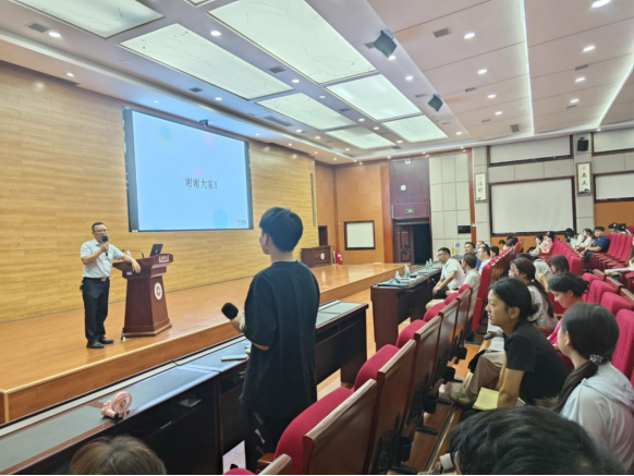 罗海波老师首先向本次出席的同学表示欢迎并介绍了主讲人的创作成就。接着,主讲人胡启涌以“中国是散文大国,白话散文仍在路上”破题,指出散文与生活的本质联系,提出“立意要出其不意,行文忌发力过猛”的核心技巧,认为散文需通过细微之处展现深刻主题,避免过度抒情或刻意升华。在情感表达方面,他强调应注重细腻呈现,以含蓄方式传递思想内涵。在讲座尾声的互动环节中,两位学生就创作核心问题提问。针对“如何实现形散神不散”,胡启涌研究员强调立意是文章的“神”,需围绕核心主旨筛选生活碎片,让看似分散的素材服务于统一的思想内核。面对“投稿被拒如何调整心态”,他坦诚分享自身经历,将失败转化为创作动力,建议学生将退稿视为改进方向,在语言打磨与立意深化中积累进步。他以“散文创作离不开土地与生活”为结语,呼吁学生怀揣对文学的热忱,在观察与思考中提炼文字的力量。