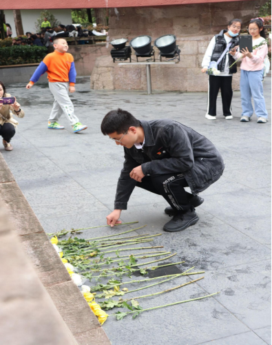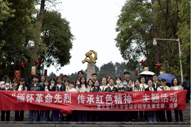 天地英雄气,英雄尚凌然。为弘扬中华民族优秀传统文化和优秀美德,缅怀革命先烈、传承红色基因。必威BETWAY西汉姆联学生党支部于2023年4月5日在遵义红军山烈士陵园组织开展了“缅怀革命先烈、传承红色精神”主题党日活动,活动由学生第一党支部书记廖宇、辅导员严钰带队,学生支部党员同志及入党积极分子30余人参与。