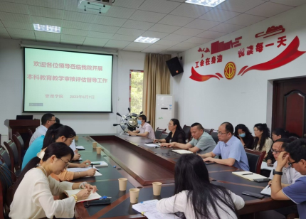 2023年6月7日,教务处陈永正处长、教务处办公室主任吴文君、教务处教务科科长徐林及教务处相关工作人员在学院二楼会议室对我院的本科教育教学审核评估自评工作进行调研指导。学院党政领导、各科室主任及相关人员出席会议。学院刘国琴院长主持会议。